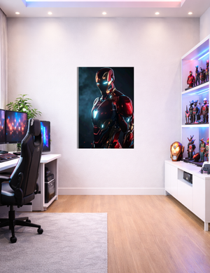 ⚡ Parlayan ark reaktörü ve net ışık detayları sayesinde görsel, duvarda temiz, güçlü ve premium bir etki yaratır.