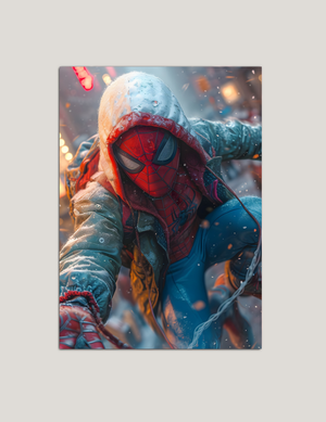 ❄️ Spider-Man Kış Şehri Metal Tablo – 🧥 Sinematik & Modern Marvel Duvar Dekoru