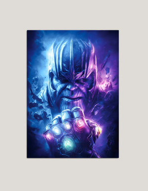 🌌 Thanos’un kozmik gücünü ve evreni şekillendiren kararlılığını yansıtan bu sinematik metal tablo, derin mavi–mor tonlarıyla güçlü bir atmosfer sunar.