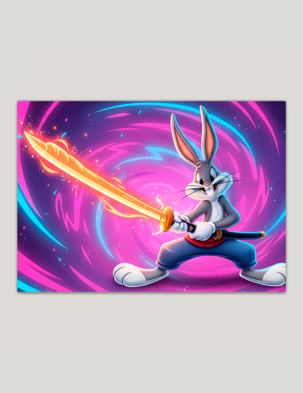 🎨 Bugs Bunny – Neon Havuç Kılıcın Efsanesi Metal Tablo