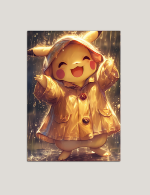 🎨 Pikachu – Yağmurun Altında Altın Gülüş Metal Tablo