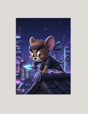 🎨 Tom & Jerry – Neon Şehirde Ninja Görev Metal Tablo