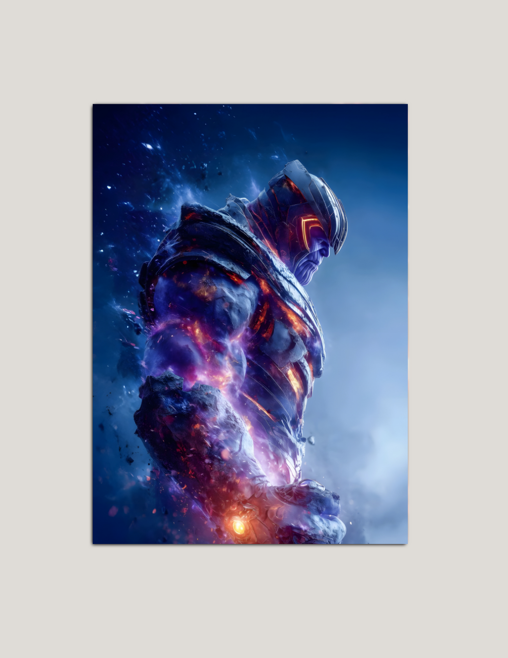 Bu Thanos metal tablo; gücü, dengeyi ve kozmik tehdidi tek bir görselde buluşturan ikonik bir duvar parçasıdır ⚡
