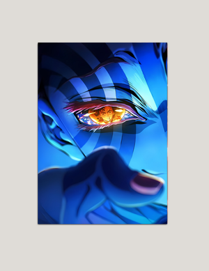 Akaza’nın gözündeki Tanjiro yansımasını sinematik bir kadrajla anlatıyor.